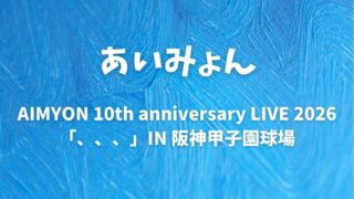 『AIMYON 10th anniversary LIVE 2026 「、、、」 IN 阪神甲子園球場』 公演について、ファンの皆さんのレポを元に、セトリ・ライブレポをまとめます。10周年イベントを開催。2026年7月14日(火)・15日(水)、阪神甲子園球場 で行われます。