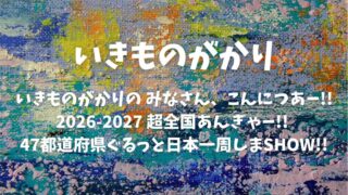 「いきものがかりの みなさん、こんにつあー!! 2026-2027 超全国あんぎゃー!! 〜47都道府県ぐるっと日本一周しまSHOW!!〜」 公演について、ファンの皆さんのレポをもとに、セトリ・ライブレポなどをまとめます。満を持して全国47都道府県を巡るツアーを行います。
