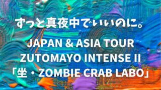 セトリライブレポ ずとまよ ずっと真夜中でいいのに。 ライブ セトリ 全日程 2026 レポ [JAPAN & ASIA TOUR ZUTOMAYO INTENSE II 「坐・ZOMBIE CRAB LABO」] ずとまよ [JAPAN & ASIA TOUR ZUTOMAYO INTENSE II 「坐・ZOMBIE CRAB LABO」] 公演について、ファンの皆さんのレポをもとに、セトリ・ライブレポなどをまとめていきます。2026年2月から大規模な日本&アジア・ツアーが発表。 2025.11.10 ずっと真夜中でいいのに。セトリライブレポ